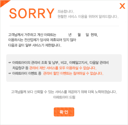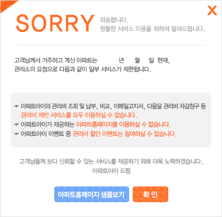 ȸ¿ø´ÔÀÇ ´ÜÁö °ü¸®»ç¹«¼Ò¿¡¼ ¾ÆÆÄÆ®¾ÆÀÌ ¹«·áÁ¦°ø ȨÆäÀÌÁö¸¦ ¿î¿µÇÏÁö ¾ÊÀ» °æ¿ì, ÀÌ¿ë ½Ã ¾î·Á¿òÀÌ Àְųª ÀÌ¿ë ÀÚü°¡ ºÒ°¡ÇÒ ¼öµµ ÀÖ½À´Ï´Ù.